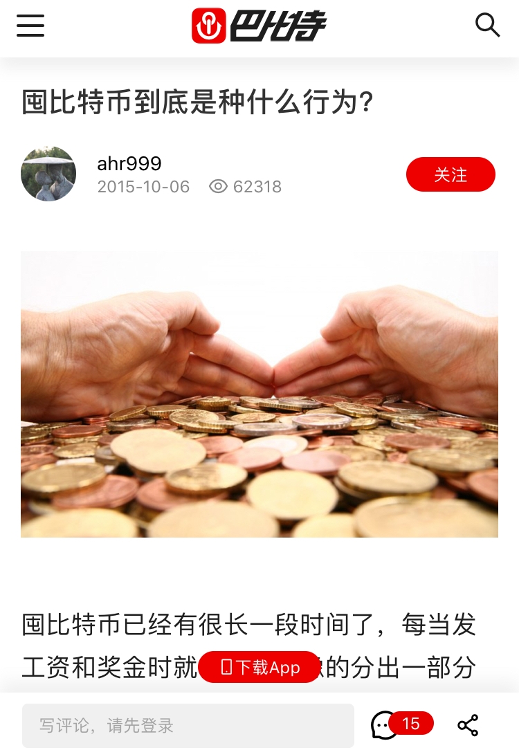 这真的是冤枉啊。整整3年前,比特币价格只有1545元的时候,我就在巴比特发表了囤比特币的文章《囤比特币到底是种什么行为?》,有图有真相,尽管当时的我对整个体系的思考没有现在这样系统。