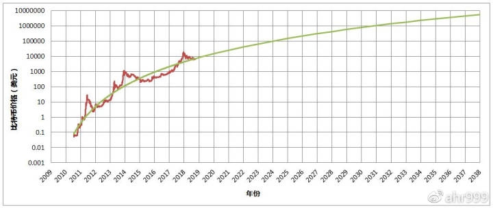 这个走势完全可以用指数级上涨来拟合,并且根据拟合结果,预测20年后的比特币价格应该在700万美元,即5000万人民币左右。与我们在《下车太早只因愿景太小》中预测的基本一致。