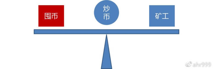 囤币是买方,矿工是卖方。最初也只有这两类人,由于这两类人有交易需求,才产生了交易所和第三类人:炒币。炒币摇摆不定,行情向上就去滑到囤币一边,行情向下就滑到矿工一边。